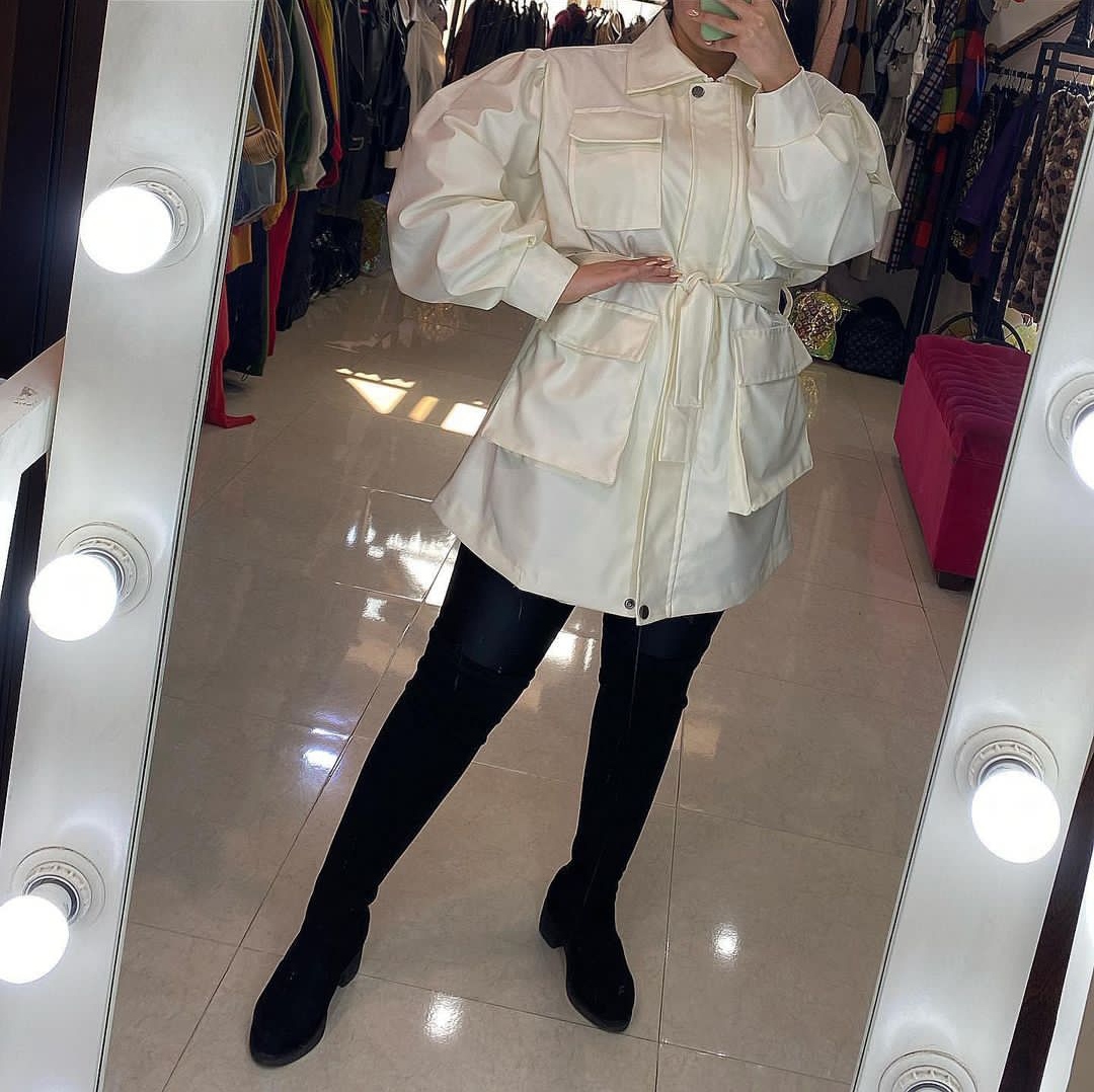 این پالتوی جذاب و ترند مناسب فصل پاییز و زمستان بوده و از جنس چرم و یقه دار می باشد