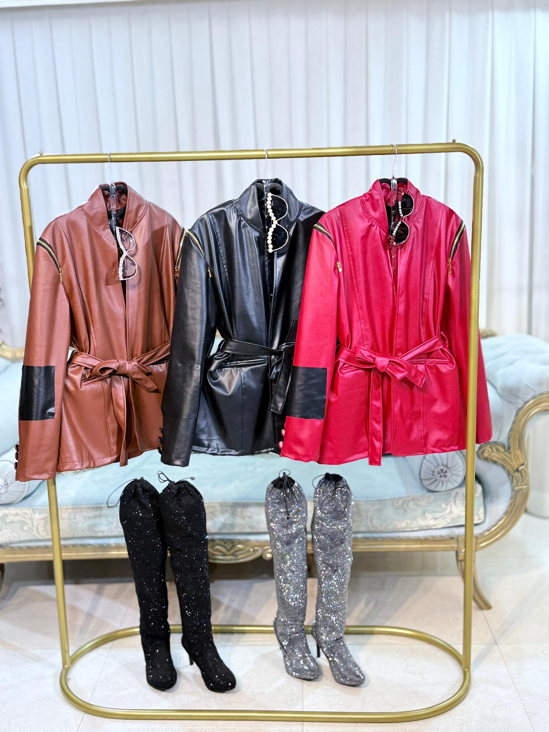 👌📣پالتو چرم سرشانه زیپ 😍